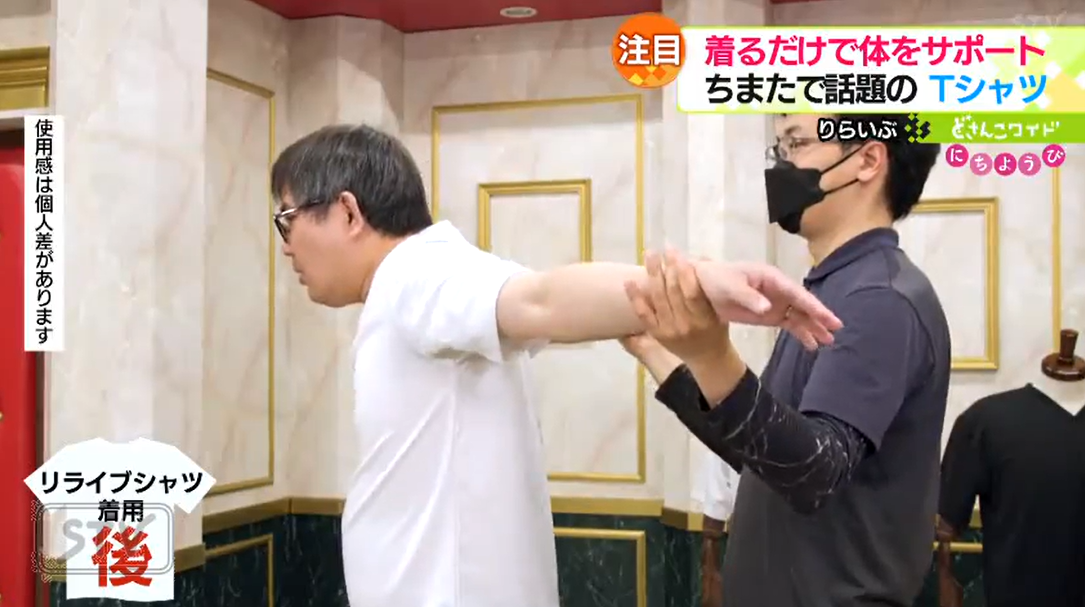 リポーターのようへいさんにもリライブシャツをご体感いただきました!
