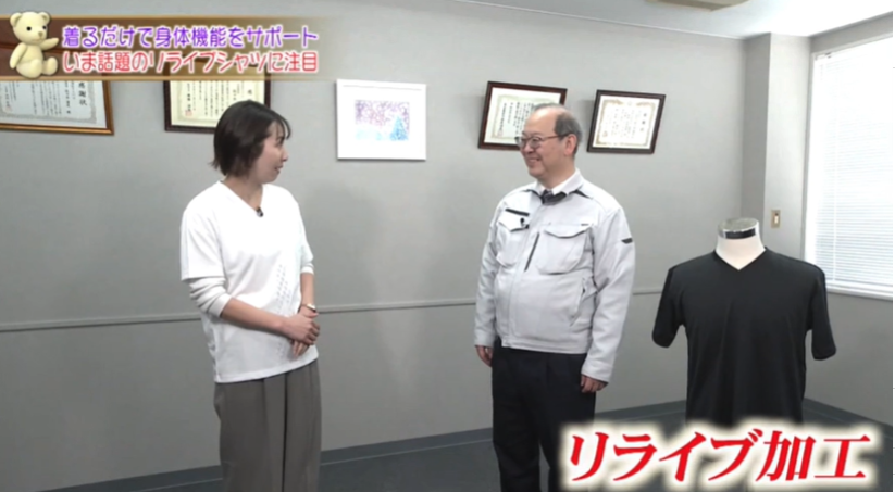3月30日、宮城テレビ「ちょっとブレイクタイム」にて、リライブシャツを紹介いただきました。リポーターの若林翔子さんにもリライブシャツをご体感いただきました!